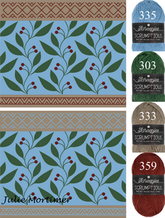 Jimmy Beans (US), Knitkat (Belgium)Yarn1 (border background, berries) in red/ 365 Summer Pudding